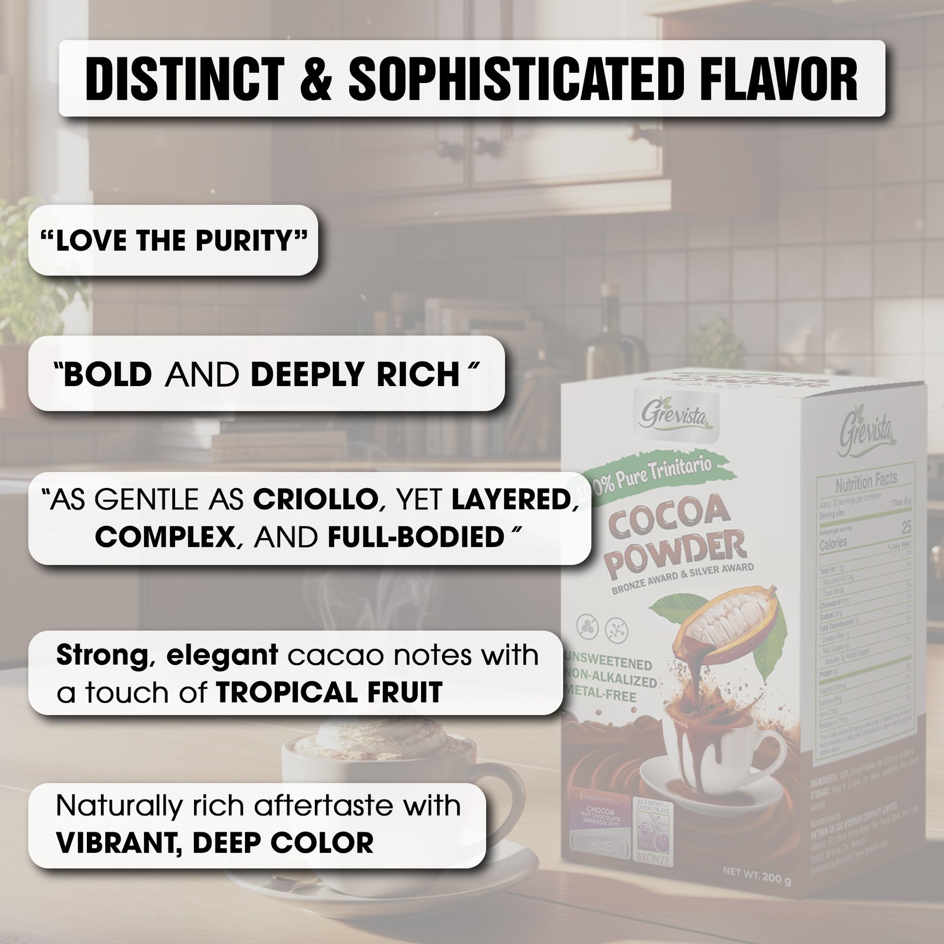 🌱 100% Pure Trinitario Cacao Powder – Where indulgence becomes an art, and every sip is a taste of Vietnam’s pride, honored worldwide.